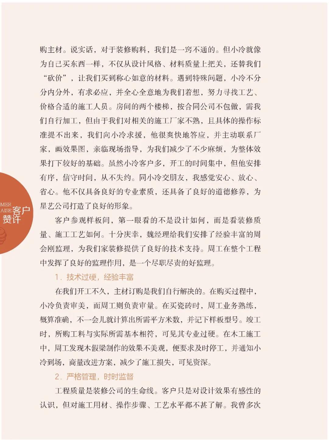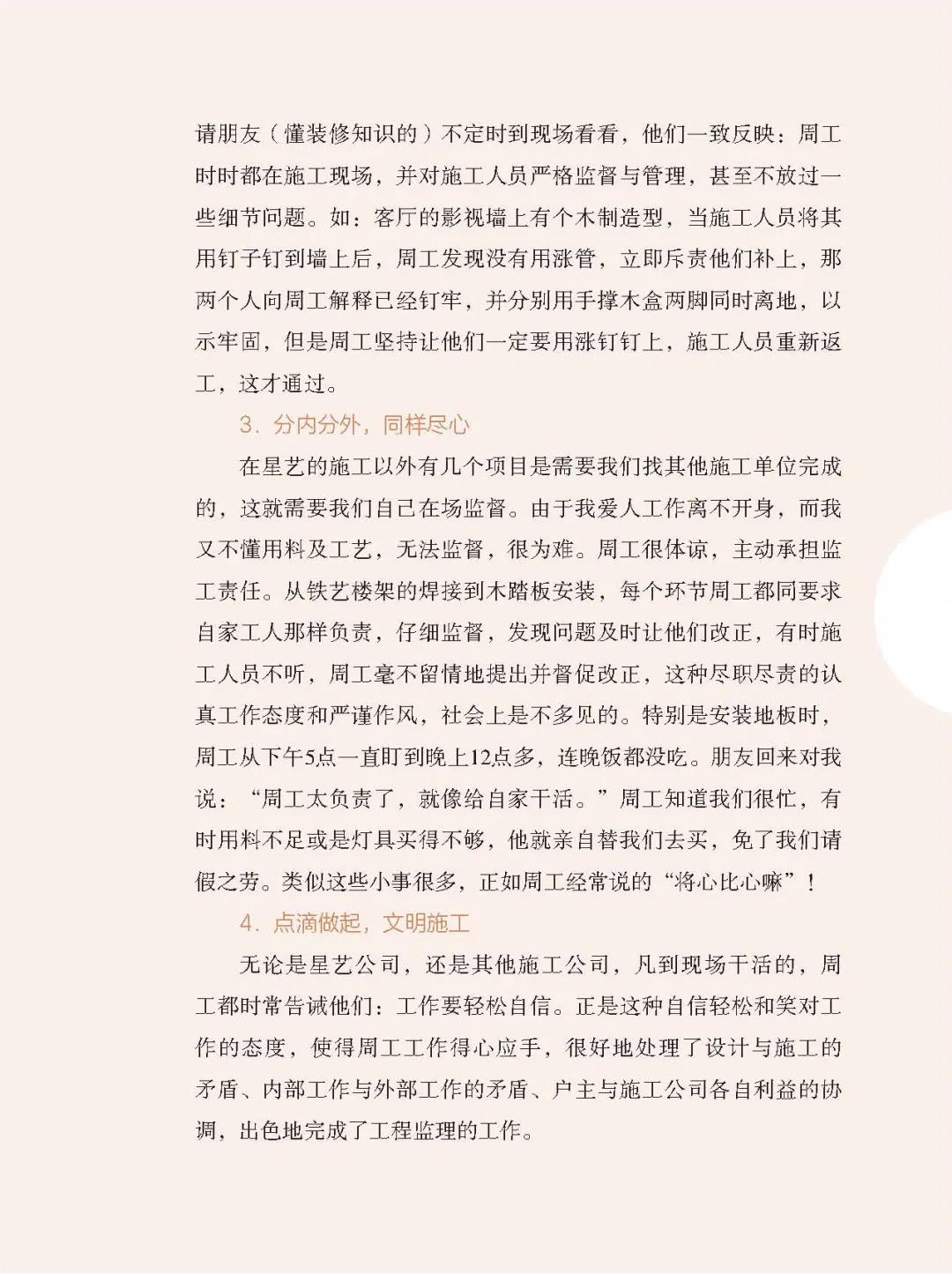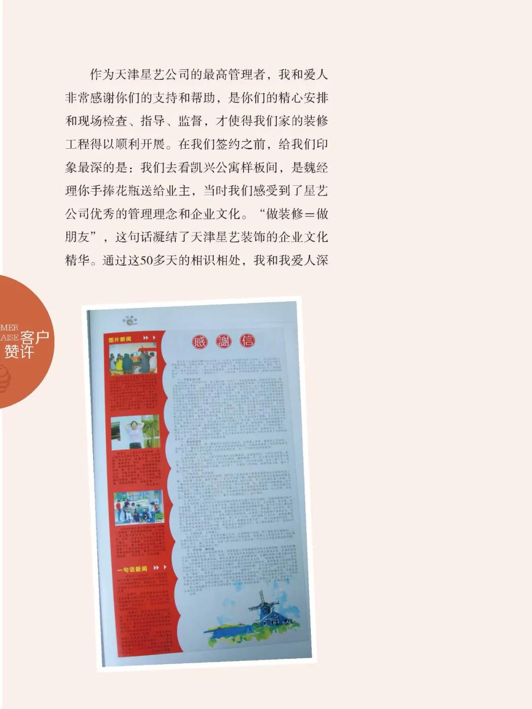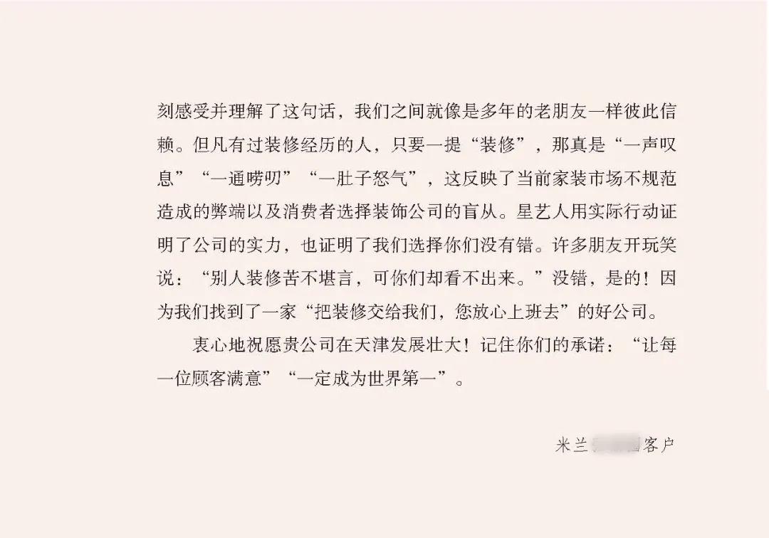 “做裝修=做朋友”,這句凝結(jié)了天津星藝裝飾的企業(yè)文化精華。通過這50多天的相識相處,我和我愛人深刻感受理解了這句話,我們之間就像是多年的老朋友一樣值得信賴。