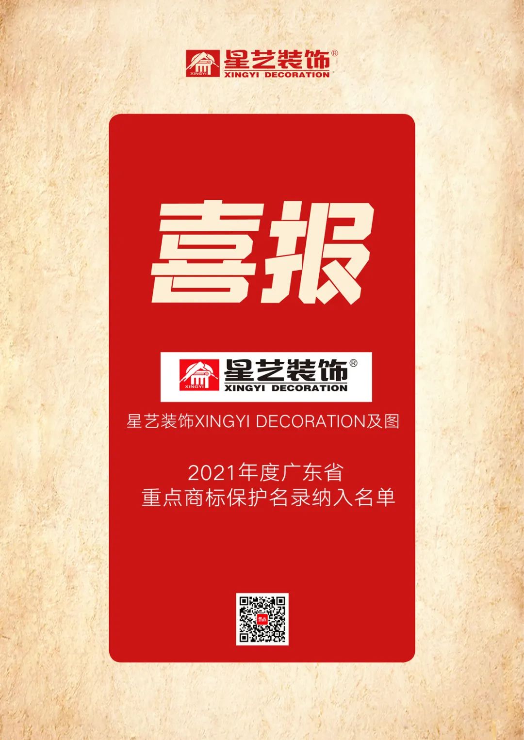 喜訊 | “星藝裝飾”商標入選廣東省《重點商標保護名錄》