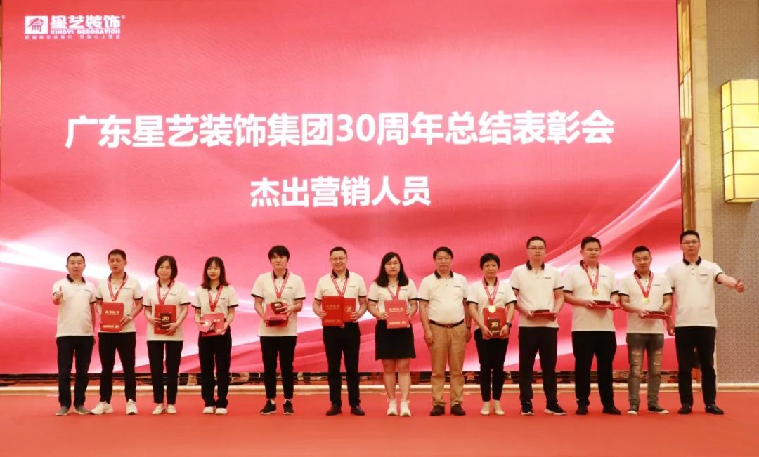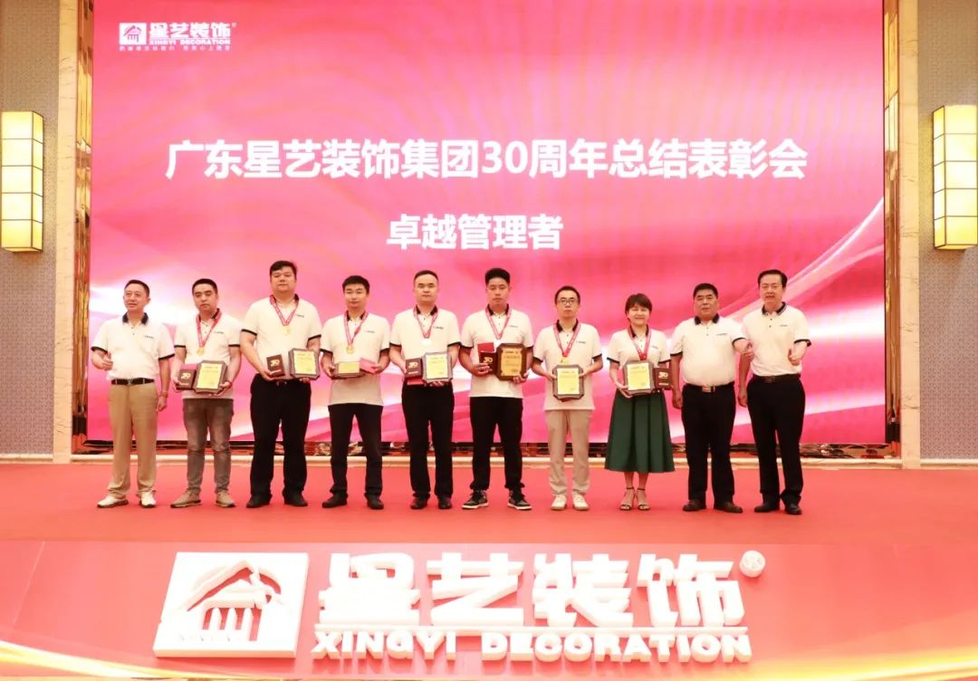 在表彰大會上,星藝裝飾成立30周年特設(shè)“功勛人物獎”“卓越管理者獎”“杰出人物獎”等九大獎項(xiàng),表彰為星藝裝飾作出突出貢獻(xiàn)的團(tuán)隊(duì)和個人。“杰出人物”表彰有一線工人、設(shè)計師、營銷專員、財務(wù)人員、部門經(jīng)理和管理者代表。