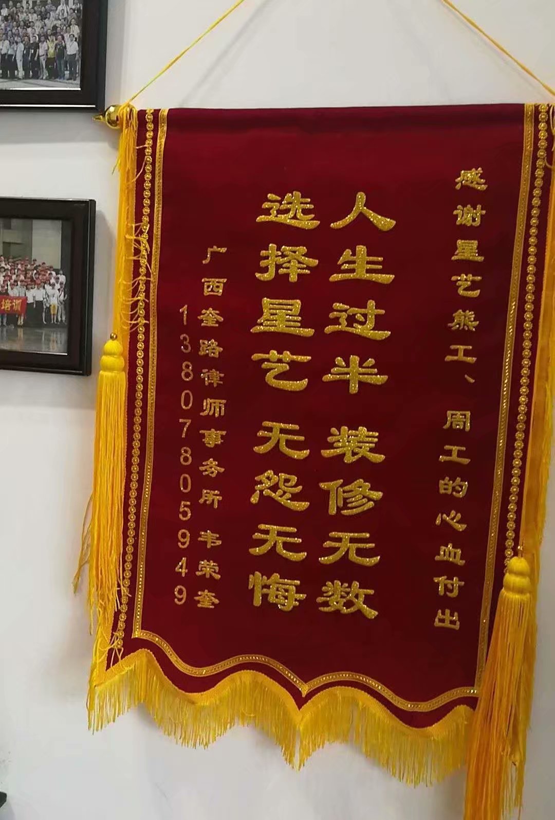 2018年2月6日業(yè)主送來錦旗:“人生過半,裝修無數(shù)。選擇星藝,無怨無悔。”