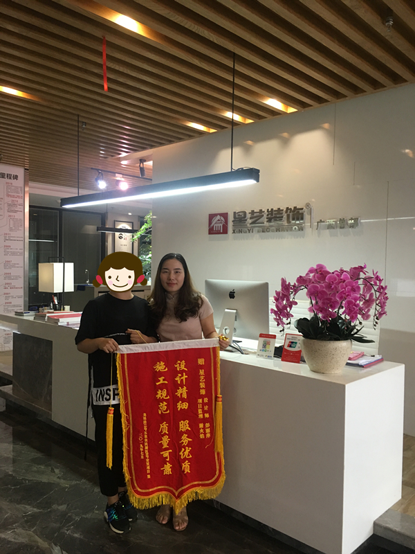 2019年9月1日,龍堤路業(yè)主送來(lái)錦旗一幅,星藝裝飾設(shè)計(jì)師彭麗萍接受錦旗,錦旗內(nèi)容:施工規(guī)范 質(zhì)量可靠 設(shè)計(jì)精細(xì) 服務(wù)優(yōu)質(zhì)