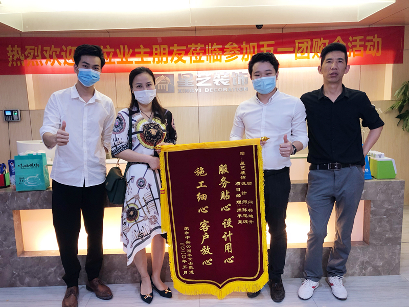 來(lái)自榮和中央公園業(yè)主將一面印有“施工細(xì)心 客戶放心 服務(wù)貼心 設(shè)計(jì)用心”的大紅錦旗送到星藝裝飾,以感謝星藝裝飾的裝修質(zhì)量和服務(wù)