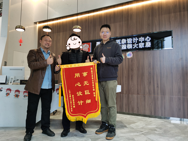 2020年十二月二十五日,圣誕節(jié)當(dāng)日,業(yè)主黃先生將大紅錦旗送到星藝裝飾五象設(shè)計(jì)中心,以感謝星藝裝飾設(shè)計(jì)師曹希用心設(shè)計(jì) 事無巨細(xì) ,這是對(duì)我們工作的極大認(rèn)可和肯定。在今后的工作中,我們將再接再厲,堅(jiān)持做客戶口碑,打造出更多的“精品工程”、“放心工程”,來回報(bào)我們的客戶。