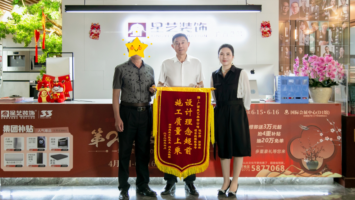 星藝公司喜獲榮譽(yù),誠(chéng)摯感謝南寧建苑小區(qū)業(yè)主劉先生的認(rèn)可與厚贈(zèng)。這份“設(shè)計(jì)理念超前 施工質(zhì)量上乘”的錦旗,不僅是對(duì)我們施工質(zhì)量上乘的肯定,更是對(duì)我們?cè)O(shè)計(jì)理念超前的贊譽(yù)。我們深知,每一個(gè)工程的成功都離不開(kāi)客戶(hù)的信任與支持。星藝公司將繼續(xù)秉承專(zhuān)業(yè)精神,為客戶(hù)提供更優(yōu)質(zhì)的服務(wù),打造更多精品工程。在此,我們衷心祝愿劉先生及所有業(yè)主們生活美滿(mǎn),事業(yè)興旺。我們用匠心雕琢每一處細(xì)節(jié),用創(chuàng)意點(diǎn)亮每一個(gè)空間,只為打造出讓客戶(hù)滿(mǎn)意的夢(mèng)想之家