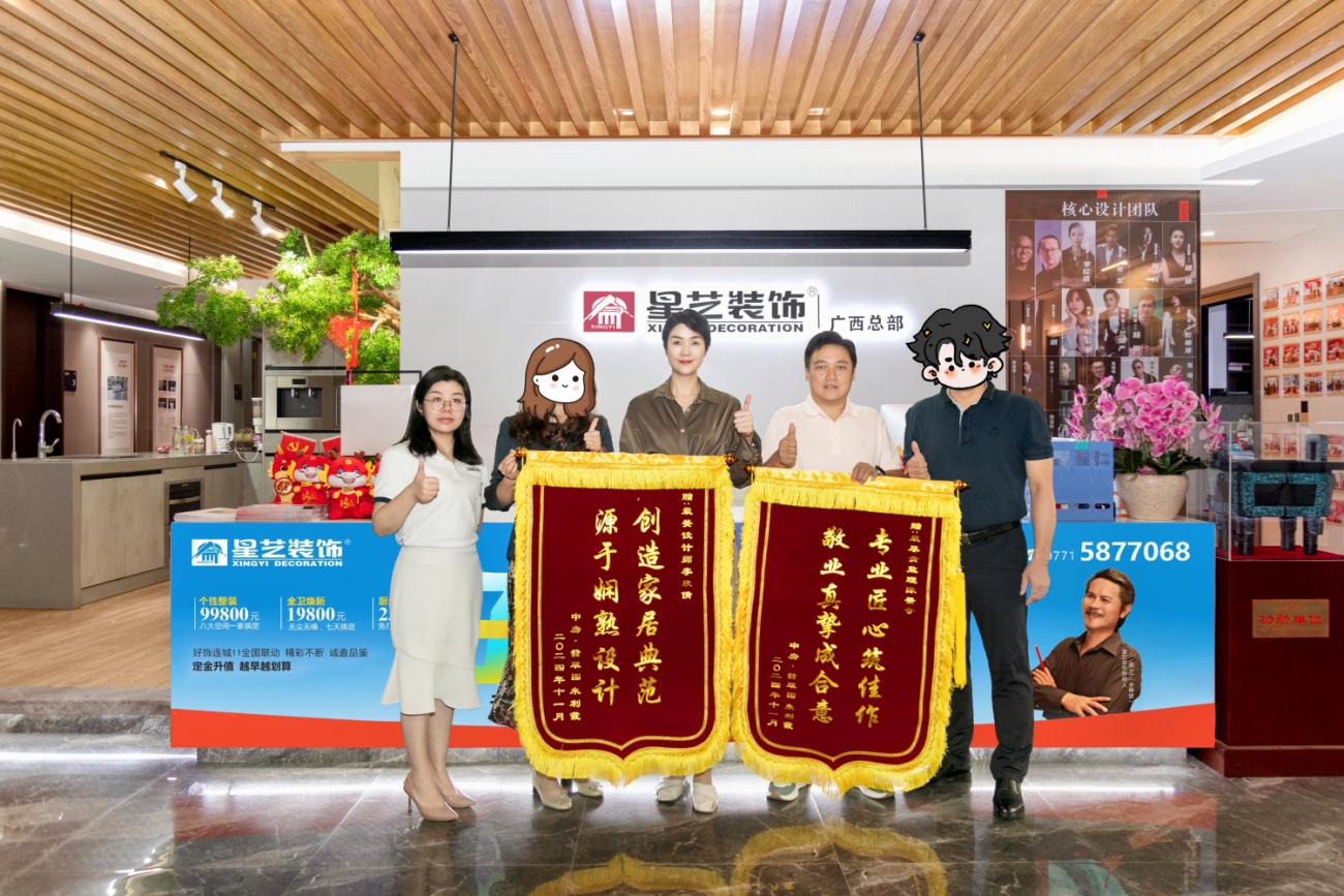 近日,在星藝裝飾廣西總部迎來(lái)了一個(gè)充滿喜悅和榮譽(yù)的時(shí)刻。中房翡翠園小區(qū)的一位業(yè)主特地送來(lái)兩幅錦旗,以表彰我們團(tuán)隊(duì)在裝修項(xiàng)目中的卓越表現(xiàn)。這兩幅錦旗分別贈(zèng)與設(shè)計(jì)師李欣倩和項(xiàng)目經(jīng)理陳景奇,內(nèi)容分別為:“源于嫻熟設(shè)計(jì) 創(chuàng)造家居典范”和“敬業(yè)真摯成合意 專業(yè)匠心筑佳作”。