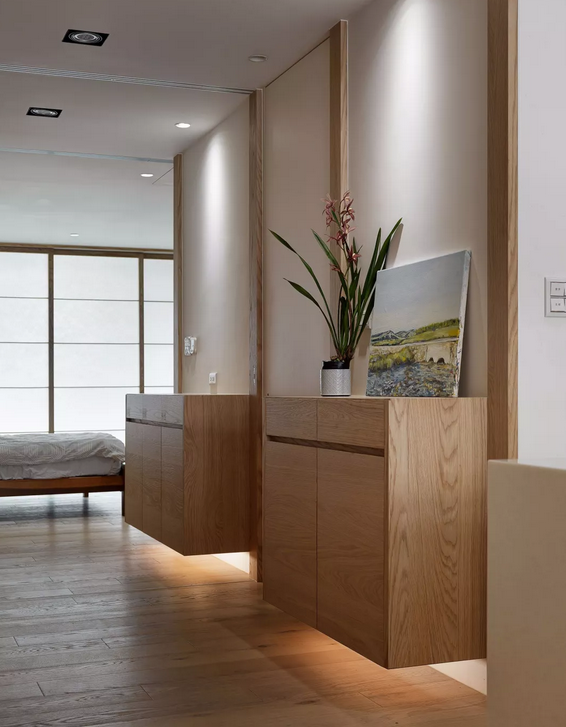 柜體內(nèi)的照明一直是個老大難,自從有了燈帶,這個問題就很容解決了。在柜子內(nèi)或者柜體頂部底部設(shè)置燈帶,可以弱化空間的封閉感和違和感。當(dāng)打開柜子時,也不會因為柜體內(nèi)部黑暗而影響視覺,而且有利于營造氛圍。如果再智能點可以配上聲控裝置,就更加方便了。