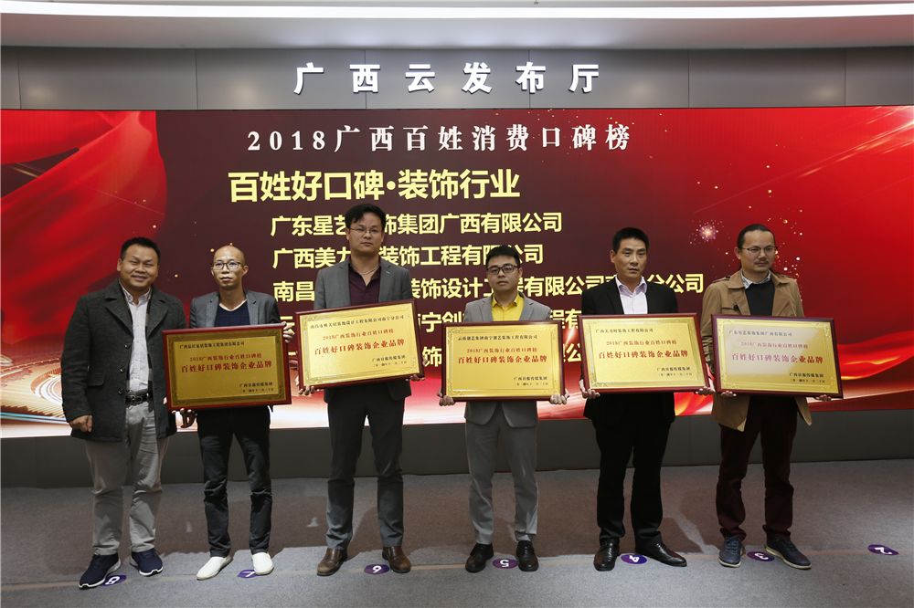 “金杯銀杯不如百姓的好口碑”,11月20日,由廣西日報傳媒集團主辦,廣西日報傳媒集團全媒體產(chǎn)品營銷中心、南國早報承辦的“2018廣西百姓消費口碑榜(酒店餐飲、家居裝飾行業(yè))頒獎盛典”在廣西云發(fā)布廳隆重舉行;經(jīng)過五十多萬老百姓、歷時兩個多月的推選、投票、評選,星藝裝飾此次榮獲“百姓好口碑”、“年度影響力”兩個大獎;在獲獎時星藝南寧區(qū)域總監(jiān)李明上臺致辭表示:獲獎的背后是付出,更是壓力與動力。獲獎企業(yè)將珍惜來之不易的榮譽,并以此為鞭策,一如既往用最優(yōu)的品質(zhì)、最好的服務回饋廣大家裝消費者。
