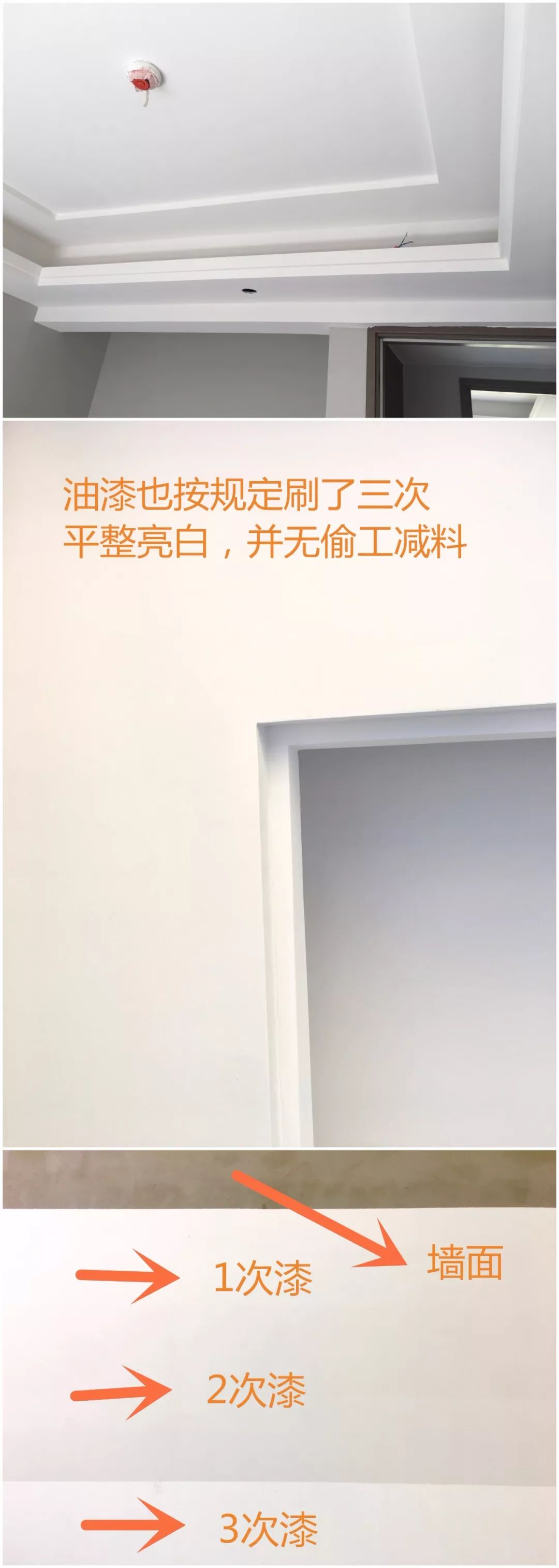 ▲媳婦問設(shè)計(jì)師“為什么要上三次漆”的時(shí)候,設(shè)計(jì)師說是公司工藝,目的是為了日后長時(shí)間保持墻面整潔,媳婦不以為然,后來無意間在回南天時(shí)去親戚家做客看到他自己裝的墻面后,才死死記住了。