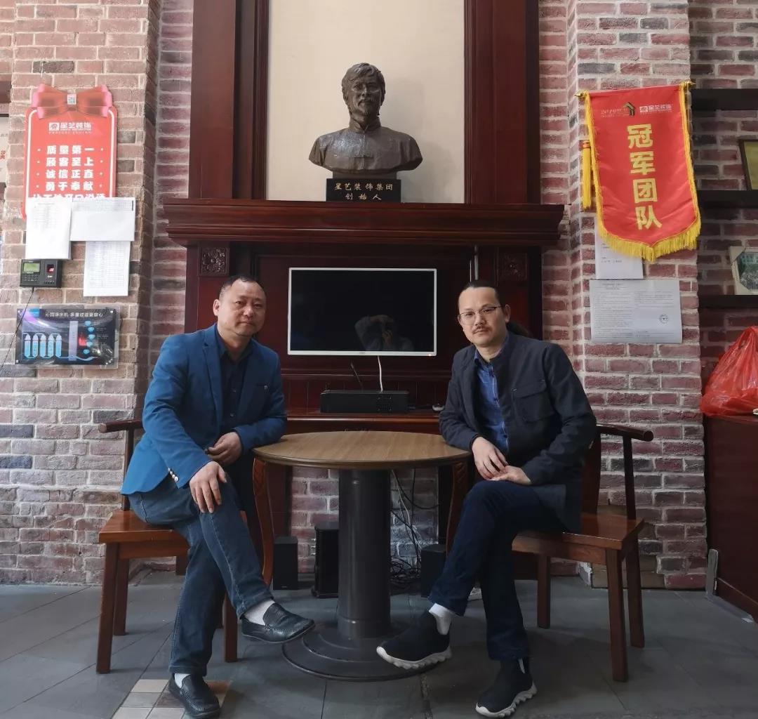 ▲2019年,設(shè)計(jì)總監(jiān)李明(右)與余工樓設(shè)計(jì)總監(jiān)劉亞(左)合影