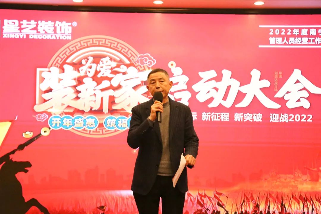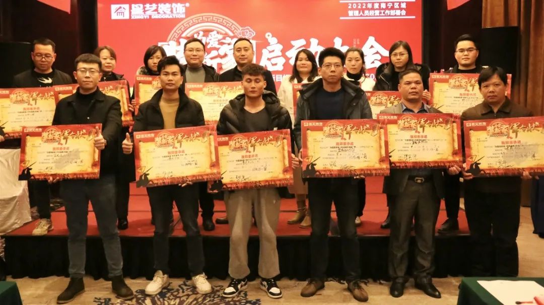 在啟動前,由星藝裝飾南寧區(qū)域設(shè)計總監(jiān)李明上臺回顧分析2021年星藝南寧所取得的成績,在同比前年數(shù)據(jù)、上游市場的變化,李工表示“星藝南寧業(yè)績能保持穩(wěn)定增長的局面實屬不易”,并強調(diào)“不止團隊管理者要創(chuàng)新,部門也必須創(chuàng)新”,隨后與各個部門負責(zé)人簽訂年度目標(biāo)責(zé)任書、開年活動任務(wù)軍令狀。