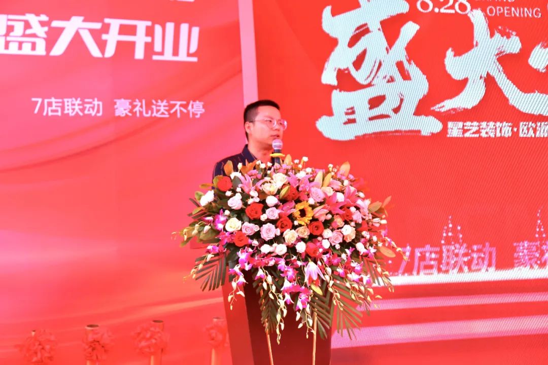 隨后,歐派集團(tuán)整裝大家居經(jīng)銷部總監(jiān)黃亮亮黃總上臺(tái)致辭,黃總表示很榮幸今天能被邀請參加如此盛大的開業(yè)儀式,2018年,歐派率先開創(chuàng)“整裝賦能”的整裝大家居模式,是行業(yè)里面第一家提出大家居概念的品牌,攜手當(dāng)?shù)貙?shí)力最強(qiáng)的星藝裝飾相互賦能,為用戶提供一站式從設(shè)計(jì)到落地的整裝最優(yōu)模式,真正的為客戶實(shí)現(xiàn)所見即所得的家裝服務(wù),也是未來最具性價(jià)比的趨勢, 因此暨此開業(yè)盛事,預(yù)祝星藝裝飾 · 歐派整裝大家居生意興隆。