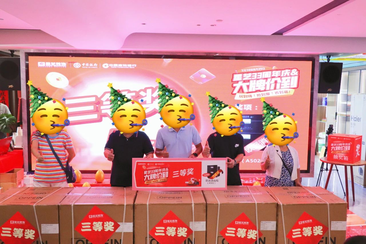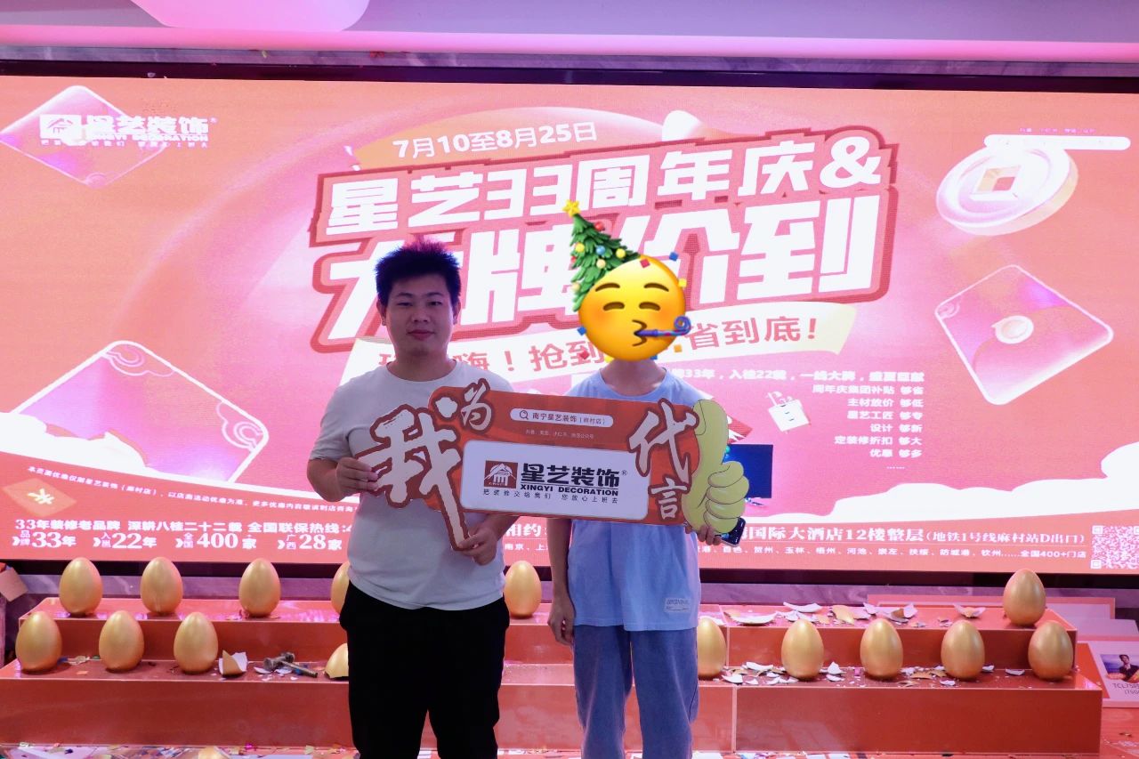 活動中,星藝南寧也100%完美兌現(xiàn)了對客戶的承諾,客戶朋友們在享受專屬于南寧區(qū)域的“集團補貼”和“周年慶多重豪禮”后,終極抽獎環(huán)節(jié)也讓客戶滿載而歸,各種驚喜好禮現(xiàn)場大派送......