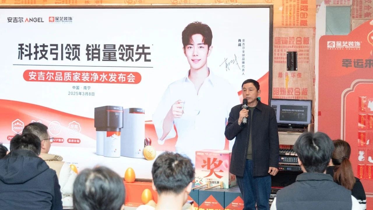 發(fā)布會現(xiàn)場,安吉爾廣西區(qū)域總監(jiān)吳偉現(xiàn)場就結(jié)合星藝裝飾著重推出了新一代“家居智能凈水”新產(chǎn)品,通過新技術(shù)全屋凈水系統(tǒng)融入星藝裝飾的智能家居設(shè)計,為業(yè)主提供“省心、放心”的健康飲水管理服務(wù)系統(tǒng),滿足普通套房、大平層、別墅等品質(zhì)住宅需求。