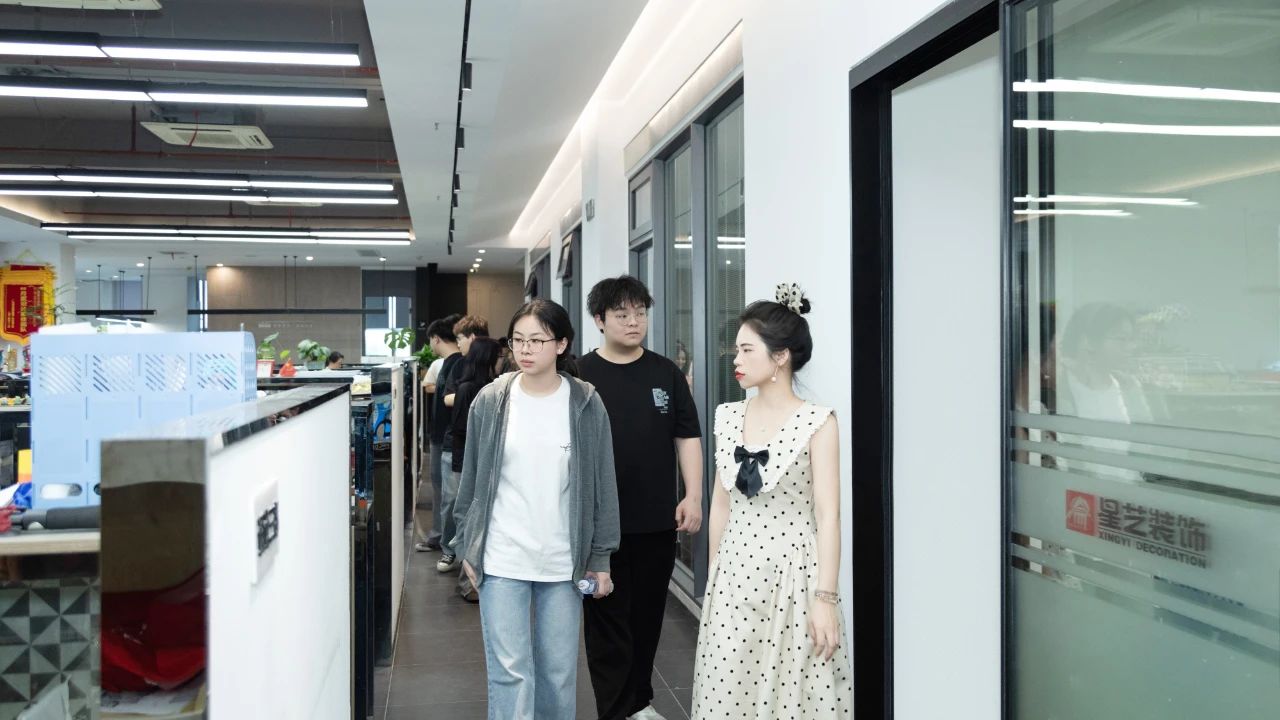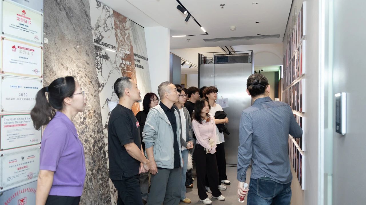 交流會后,李工和周云云經(jīng)理帶領(lǐng)學(xué)校師生一行人參觀了星藝南寧廣西總部的材料展廳、企業(yè)文化長廊、辦公室等,并就星藝裝飾在南寧發(fā)展的歷程向廣藝師生們展示了企業(yè)的綜合實力、業(yè)務(wù)布局以及專利、設(shè)計成果等方面,讓廣藝師生們留下了深刻印象。