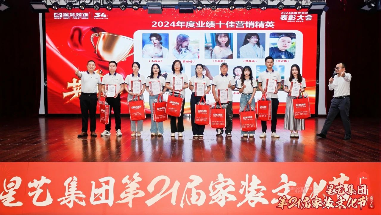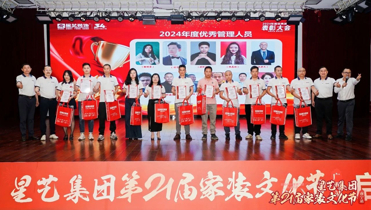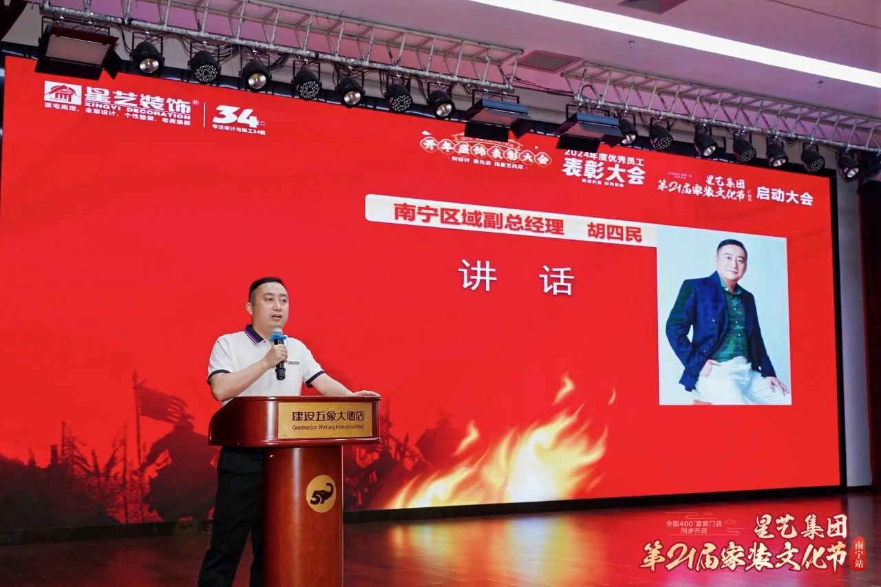 緊接著,會議進(jìn)入2024年度總結(jié)表彰暨2025年度工作部署環(huán)節(jié),星藝南寧總經(jīng)理周平生上臺致辭,周總簡要概述2024年星藝南寧所取得的佳績,肯定了星藝全體家人凝心聚力,保持業(yè)績持續(xù)增長的勢頭;同時期待2025年星藝裝飾再次勇攀高峰,取得佳績。