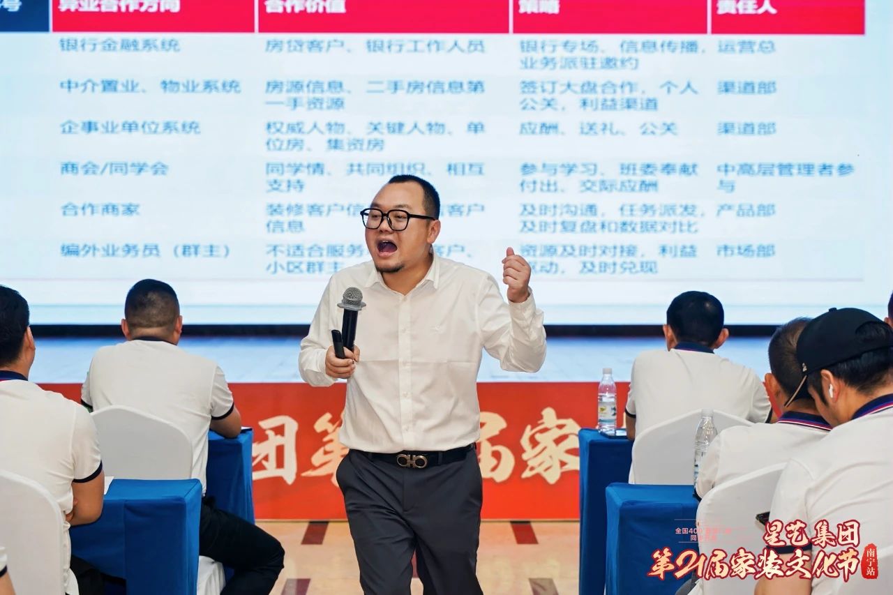 會前,為深刻全員服務(wù)意識,打造品質(zhì)家裝,星藝廣西特別邀請到了培訓(xùn)導(dǎo)師——沈小軍老師、歐派培訓(xùn)主管郭婕璇老師以及集團市場運營中心莫舒婷老師為星藝家人們作活動的培訓(xùn)。三位老師具有裝飾行業(yè)服務(wù)客戶、運營品牌等多年經(jīng)驗,現(xiàn)場就結(jié)合星藝裝飾家裝文化節(jié)閃光點、“客戶生活方式”落地以及“新媒體運營”等技巧為星藝家人們帶來了一場干貨滿滿的學(xué)習(xí)培訓(xùn)會,讓人記憶深刻,受益匪淺。