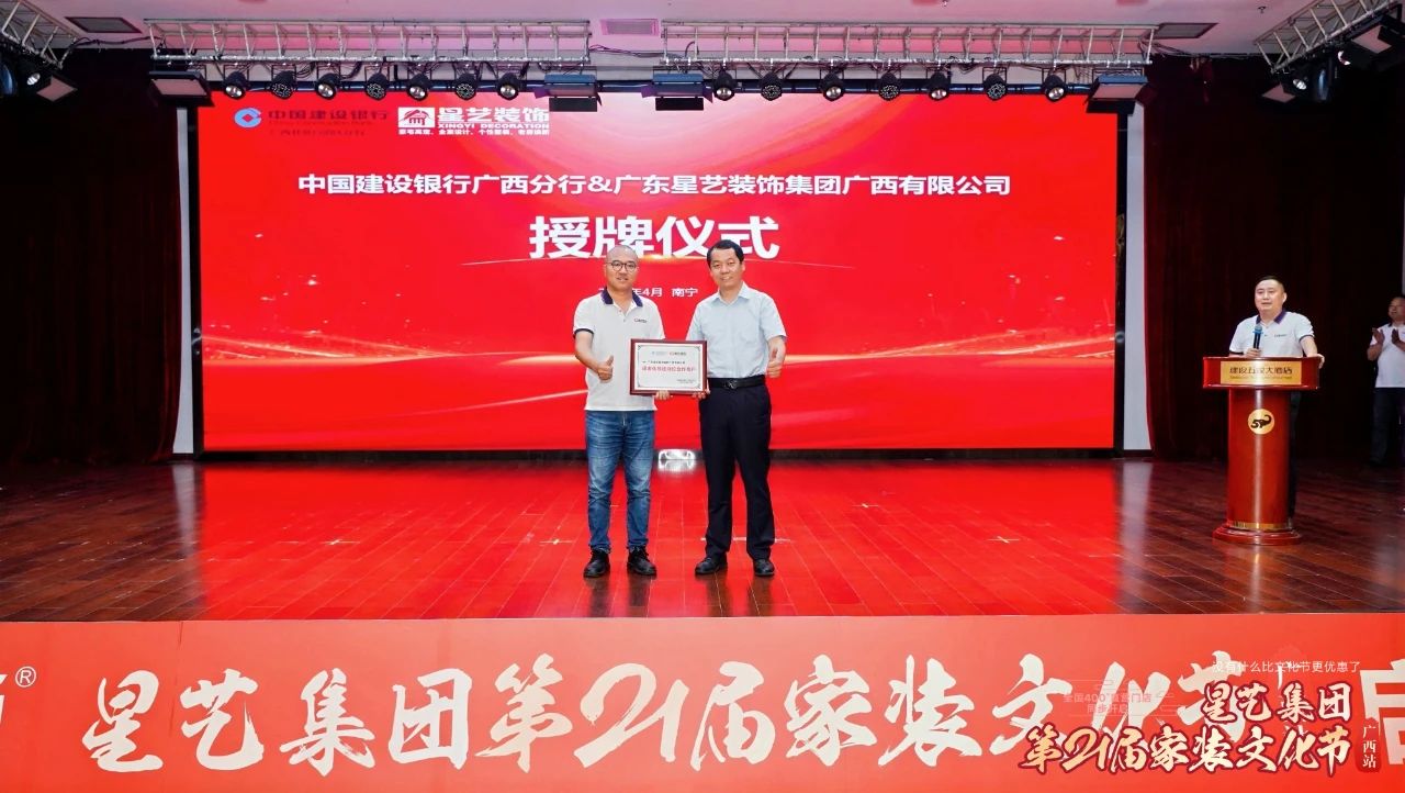 下午,中國建設(shè)銀行廣西區(qū)分行信用卡部薛江偉副總經(jīng)理、高新支行王凌娟副行長、園湖支行劉衛(wèi)華副行長等領(lǐng)導(dǎo)出席了此次啟動會。星藝裝飾作為建行重要合作伙伴,將攜手星藝裝飾在“適老化改造”上愈加緊密合作,并在現(xiàn)場授予星藝廣西為“適老化改造特約合作商戶”,共同關(guān)愛老年生活,讓設(shè)計和服務(wù)更有溫度。