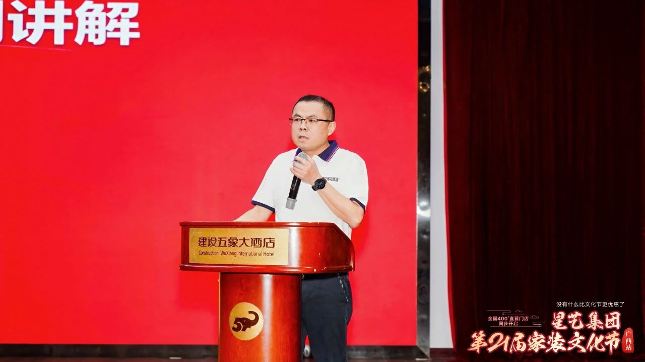 隨著時間的推移,啟動會進(jìn)入正式啟動環(huán)節(jié),集團副總裁凌峰就此次活動方案進(jìn)行了詳細(xì)的講解,闡述2025年文化節(jié)活動新的調(diào)整,同時指出活動亮點以及規(guī)則,并表示在本屆裝飾文化節(jié)中,除了“免單21萬”驚喜大獎,還特別為業(yè)主提供了更多、更大的驚喜福利,并預(yù)祝現(xiàn)場星藝家人在此次活動取得佳績。