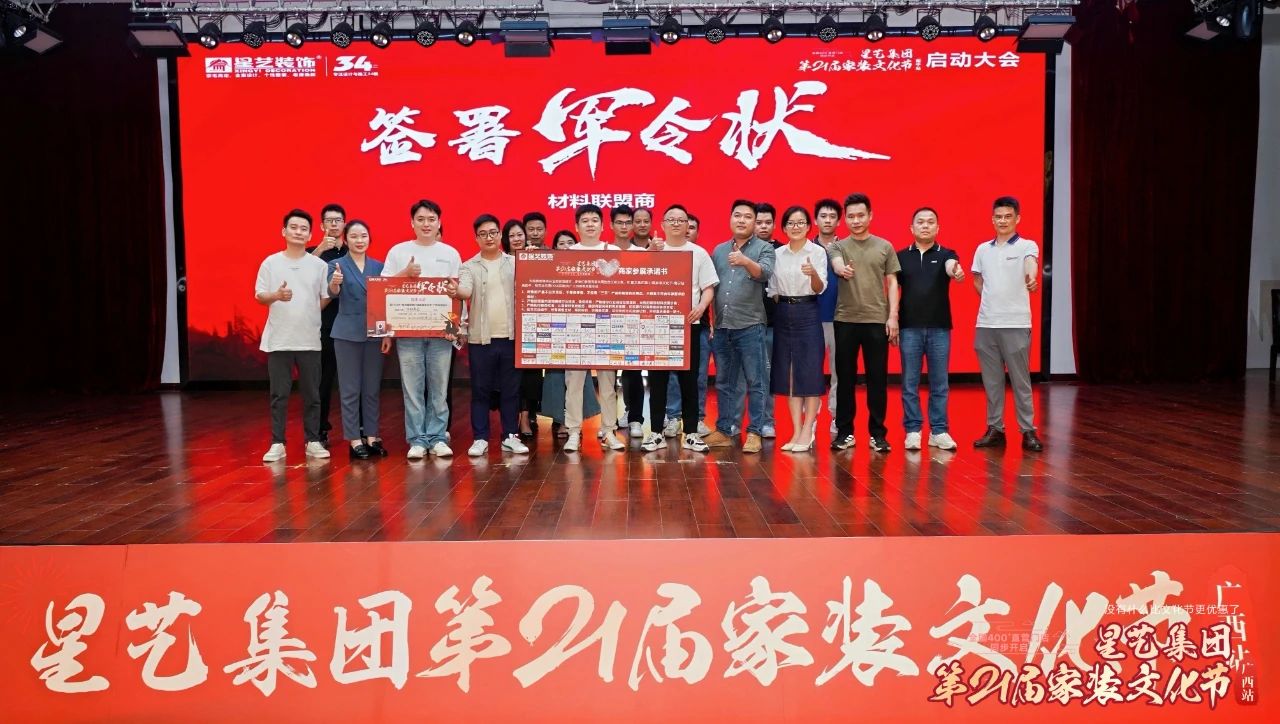 至此,星藝裝飾第21屆裝飾文化節(jié)(廣西站)啟動大會在星藝家人們的“我們一起努力”喝彩聲中圓滿落下帷幕,讓我們不忘初心,凝心聚力,為新的征途而勇敢向前!