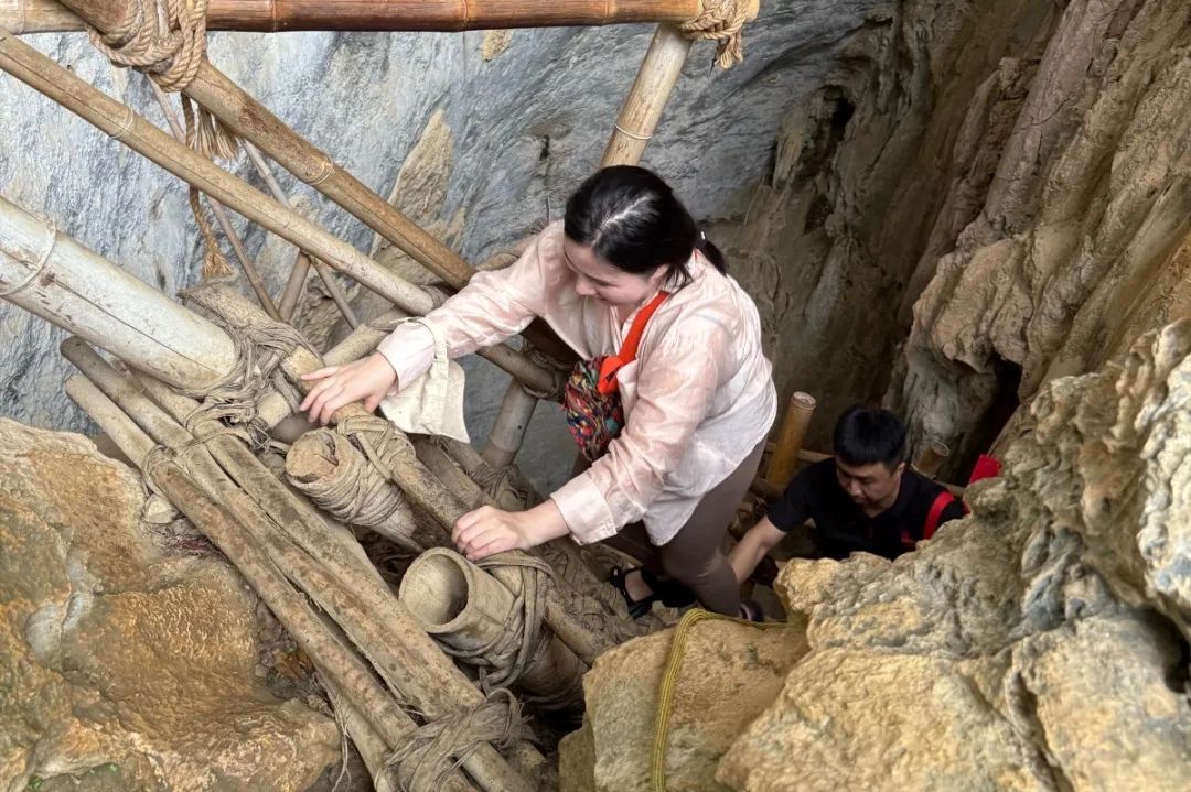 隨后,黨員們還一起前往凌云縣艱苦奮斗教育基地—豬籠洞,重走村民出入大山爬行的艱險不易,參觀通過政府“振興鄉(xiāng)村”扶持后,原本閉塞貧困的浩坤村變成通路通電且青山綠水的旅游富裕村。