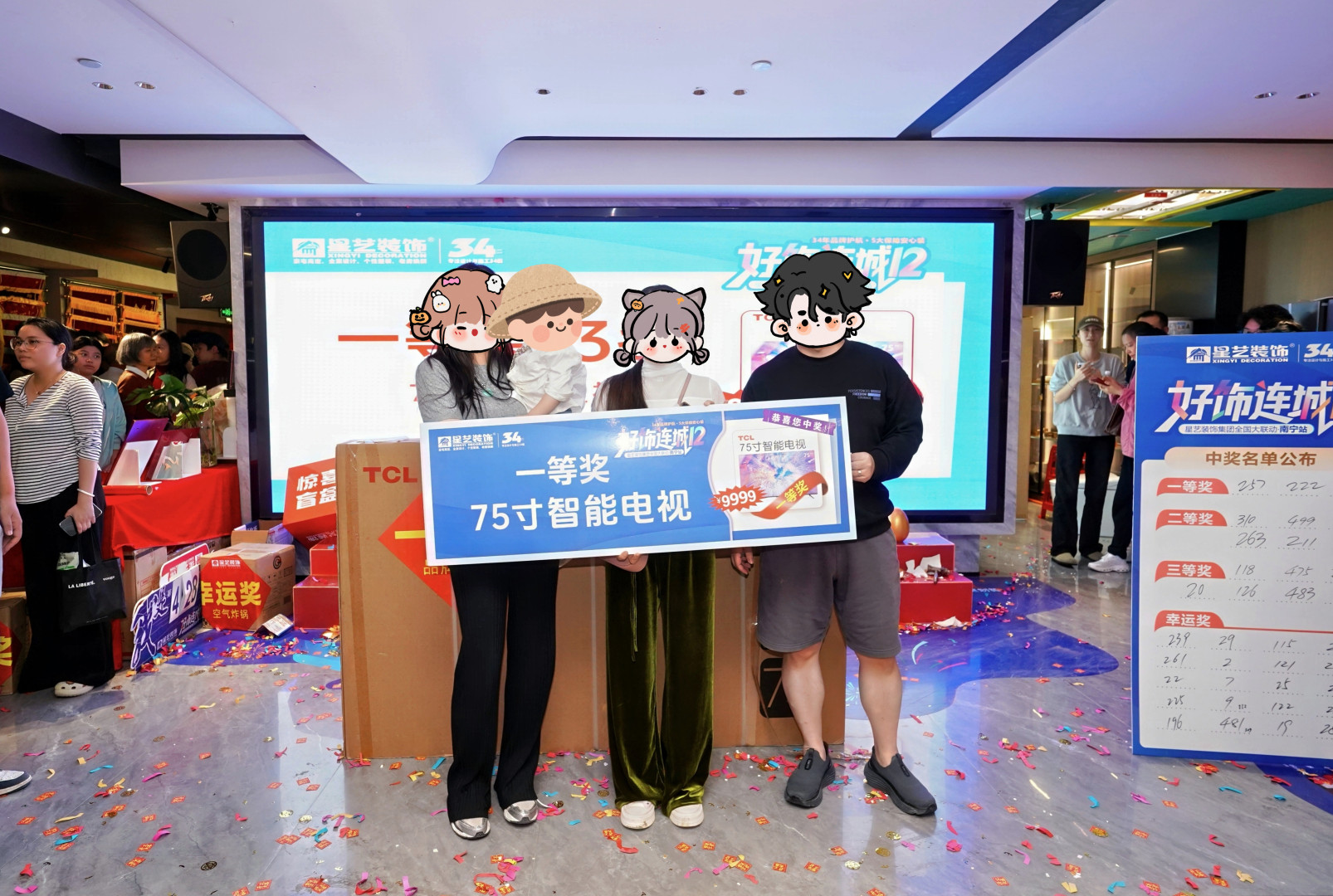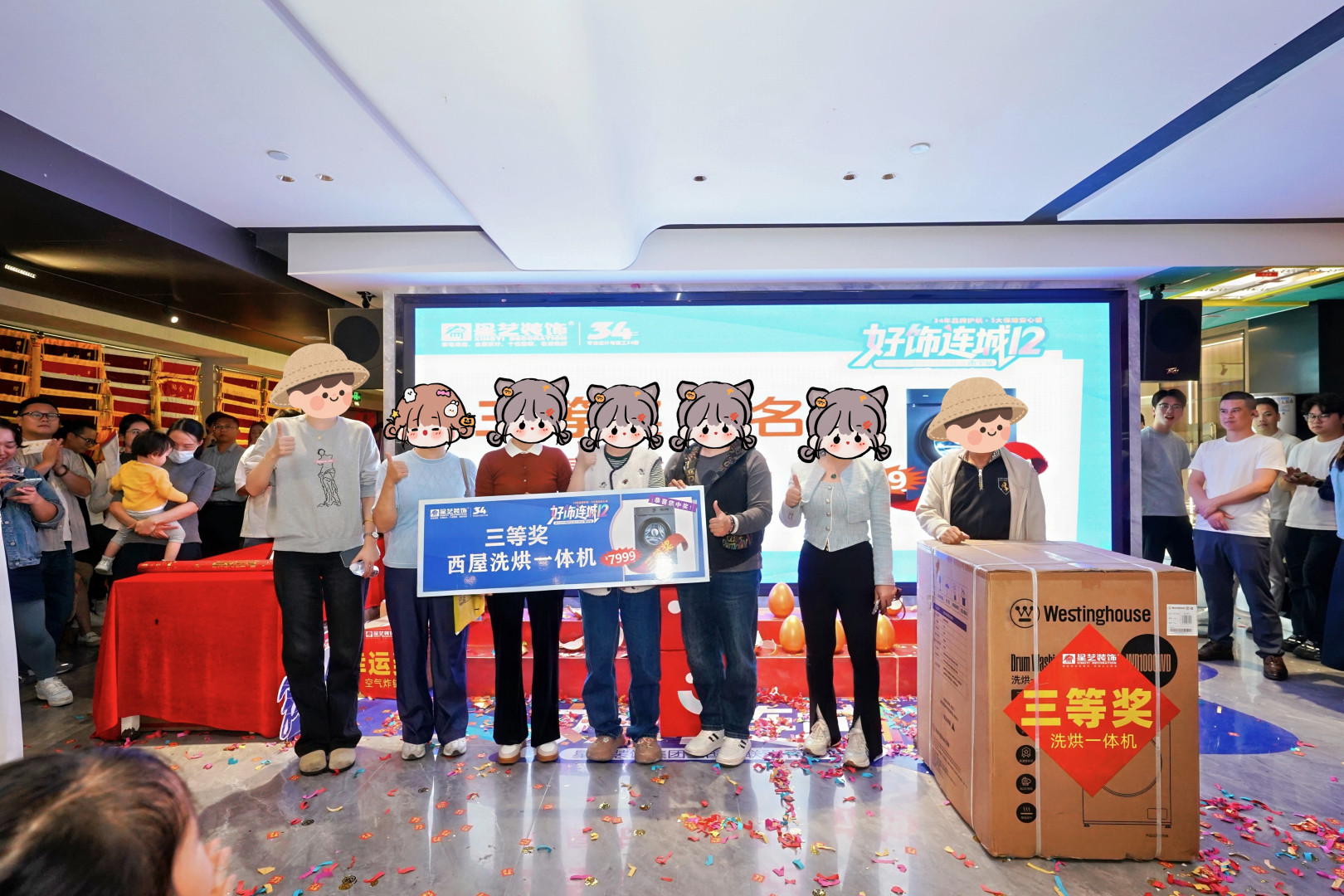 落地狂歡現(xiàn)場(chǎng),在新老業(yè)主的見(jiàn)證下,75寸品牌液晶電視、雙開(kāi)門(mén)冰箱、洗烘一體機(jī)等品牌家電好禮100%兌付,以此感謝新老客?戶對(duì)星藝裝飾的信賴與厚愛(ài),也為“好飾連城12(南寧站)”活動(dòng)劃上圓滿句號(hào)。